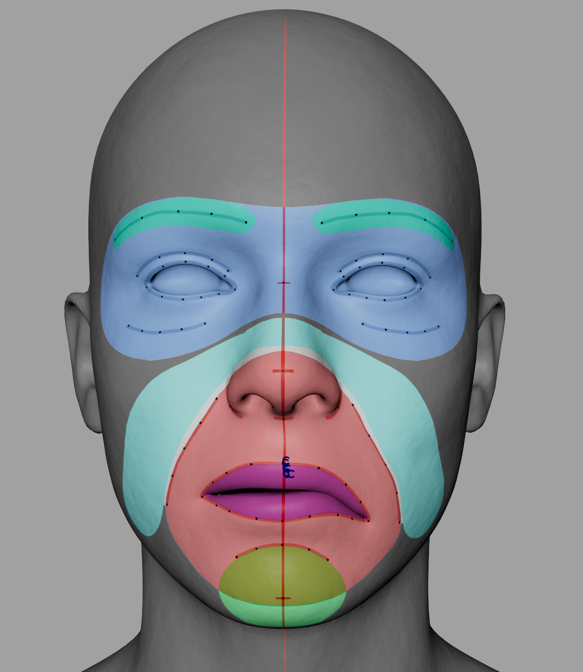 It combines two AUs, identified as 1 and 2, which stand for inner and outer brow raises, respectively. One piece of advice I received from industry veterans is to push those wrinkles farther than they should. I received the same criticism from Nick Zuccarello, my art instructor. With that in mind, I began by making eyebrow clusters to aid in the creation of all the AU's I have scheduled for this week.